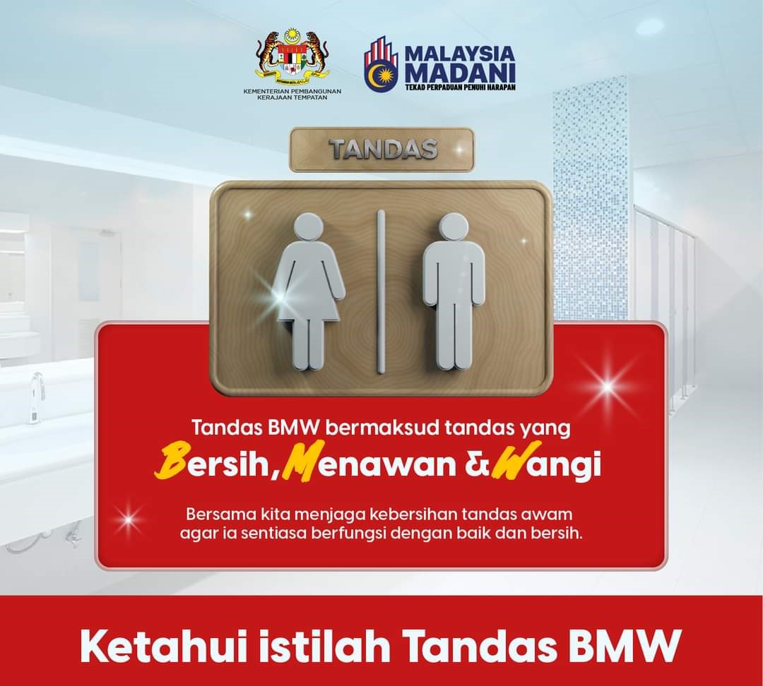 Tandas yang selesa adalah tandas yang bertaraf Bersih, Menawan & Wangi (BMW)